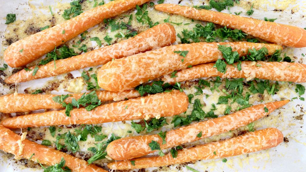 Garlic Parmesan Roasted Carrots With Carrot Top Rasa
